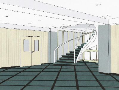 Neugestaltung des Foyers eines Bürogebäudes, Berlin-Kreuzberg 2006, hier die Planung...